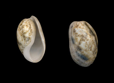 Bulla occidentalis A. Adams, 1850 Collected while snorkeling from 0.5 to 1 meters depth, fanned from sandy mud between algae and marine plants in mangrove areas; Barcadera, Aruba, Caribbean Sea; February 2014