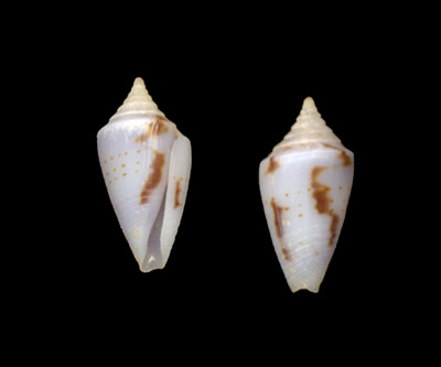 Conasprella (Ximeniconus) wendrosi (Tenorio & Afonso, 2013) Collected while snorkeling 1 meter deep on sandy bottom; Malmok, Aruba, Caribbean Sea; February 2015