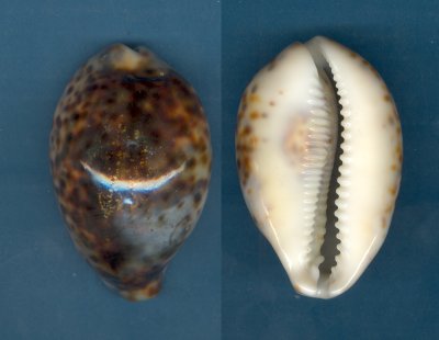 Cypraea tigris Linnaeus, 1758 Collected while diving on shallow reef; Flic en Flacq, Mauritius; Summer 2005