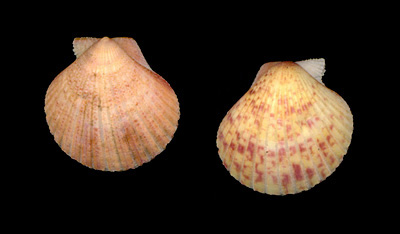 Aequipecten commutatus (Monterosato, 1875) Trawled between 50 to 80 meters deep on muddy sand bottom; Off Malaga, Spain, Alboran Sea; June 2016