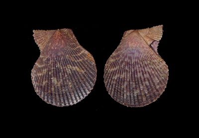 Mimachlamys varia (Linnaeus, 1758) Collected at 8 meters depth on rocky bottom; Cagliari Gulf, Sardinia, Italy; 1990