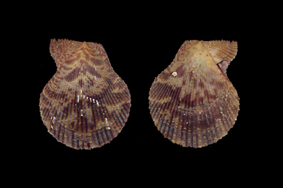 Mimachlamys varia (Linnaeus, 1758) Collected at 8 meters depth on rocky bottom; Cagliari Gulf, Sardinia, Italy; 1990