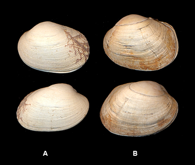 Venerupis corrugata (Gmelin, 1791) A: Collected at low tide; Øsløs Strand, Limfjord, Denmark; May 2007 B: |